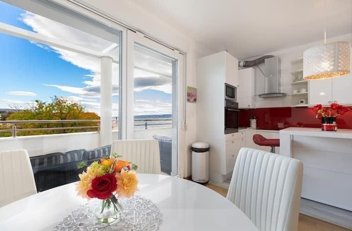 Iz stana se pruža prekrasan pogled na more, a od mora je udaljen svega 50m.