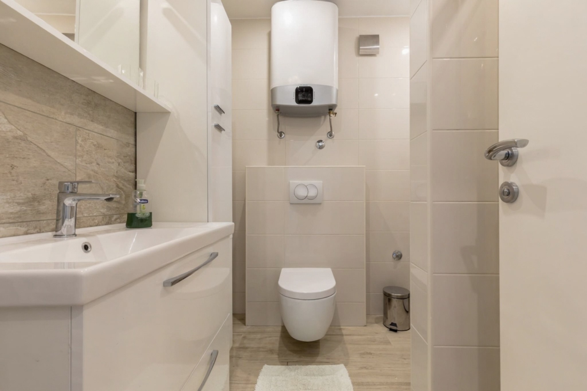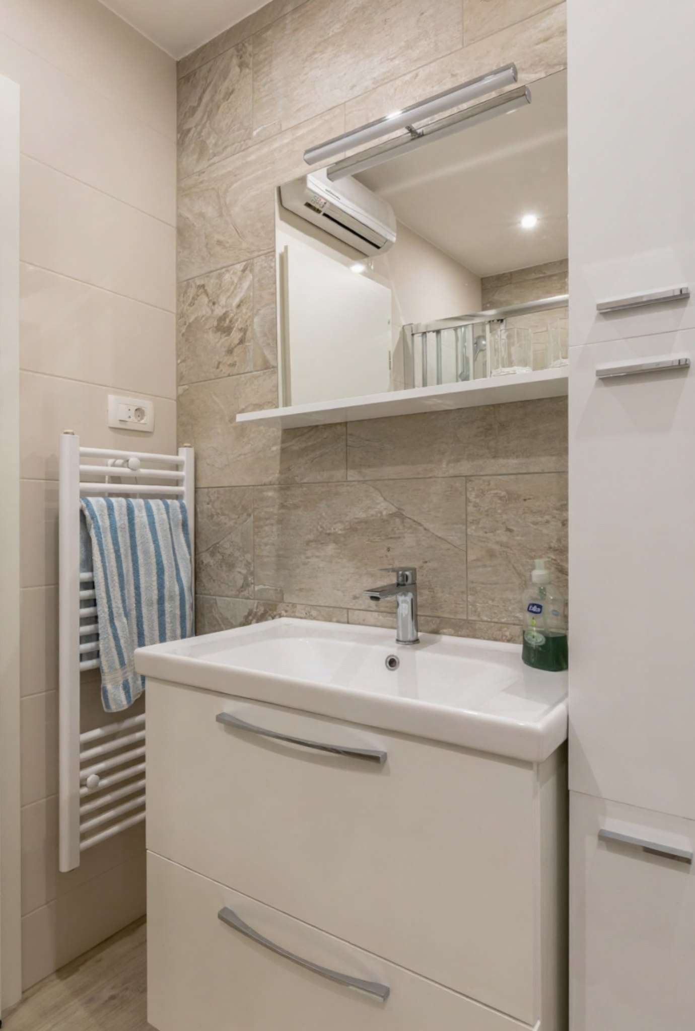 Stan je u potpunosti opremljen (podno grijanje, klima uređaj, perilica rublja i suđa). Kućni ljubimci dozvoljeni prema dogovoru s vlasnikom.