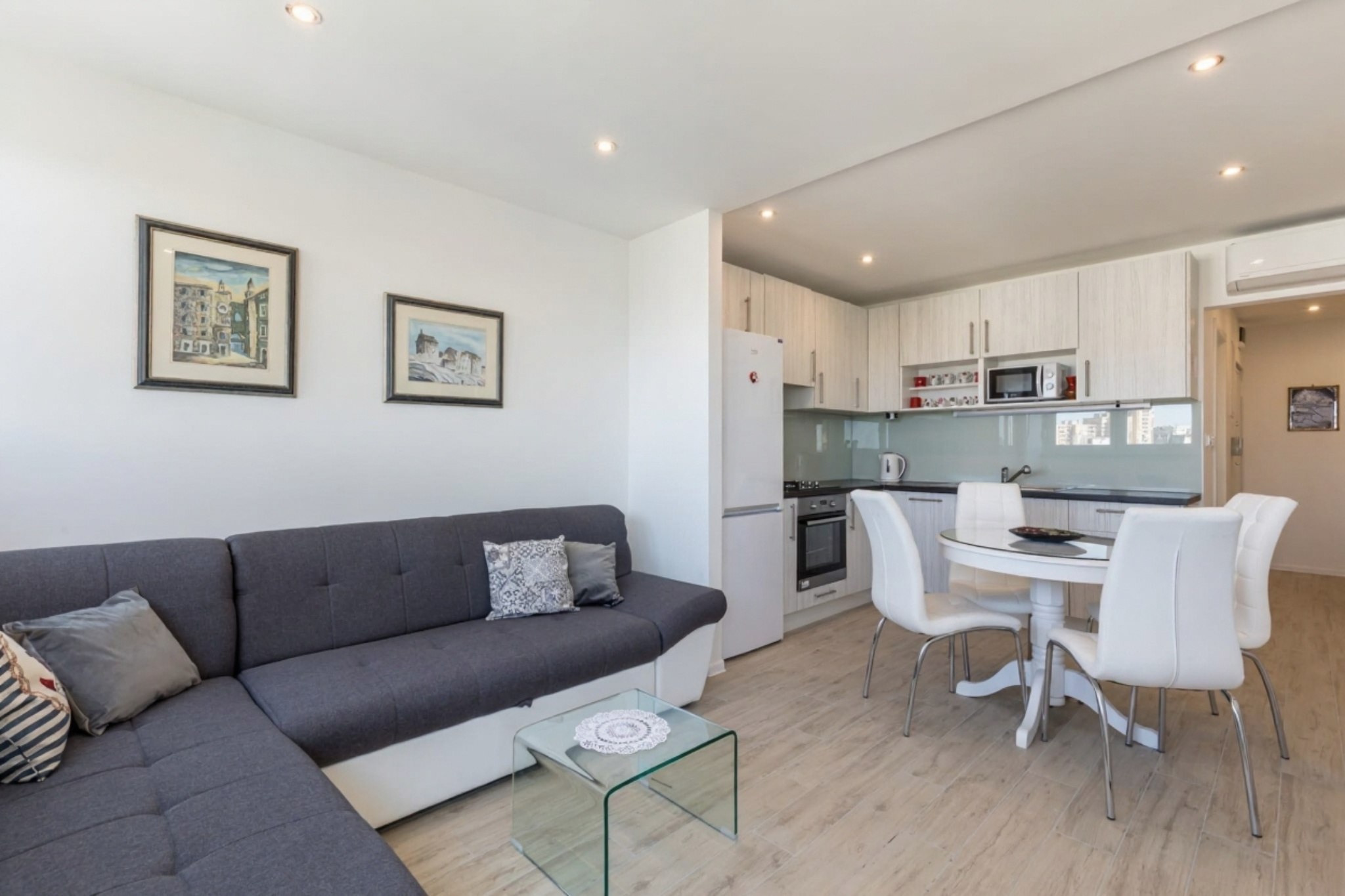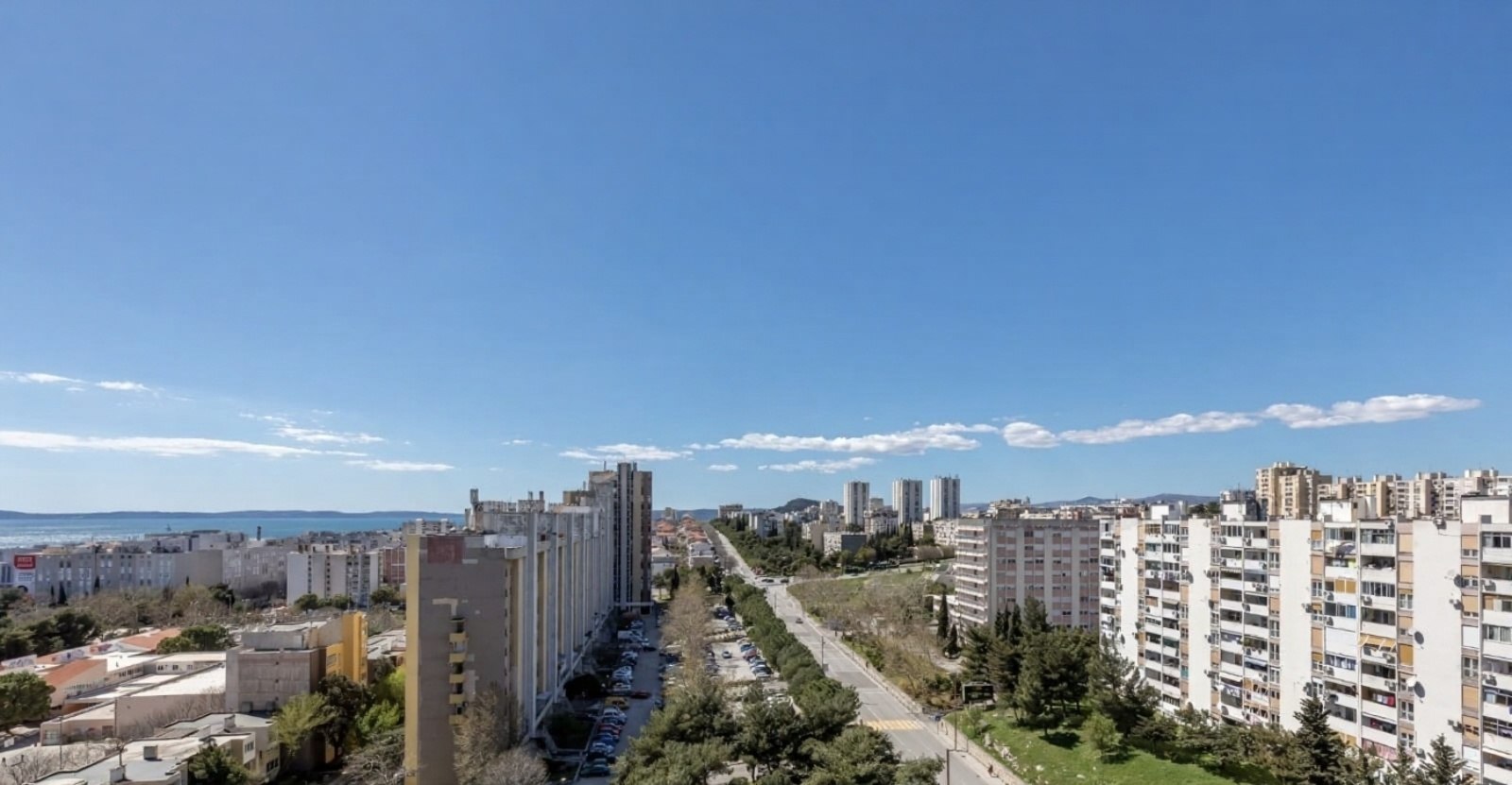 Posredujemo pri najmu novouređenog stana u Splitu, predio Split 3. Nalazi se na 11.katu stambene zgrade, a sastoji se od jedne spavaće sobe s bračnim krevetom, dječje sobe s manjim krevetom, kuhinje s blagovaonicom i dnevnim boravkom, kupaonice te balkona s otvorenim pogledom na grad i more.