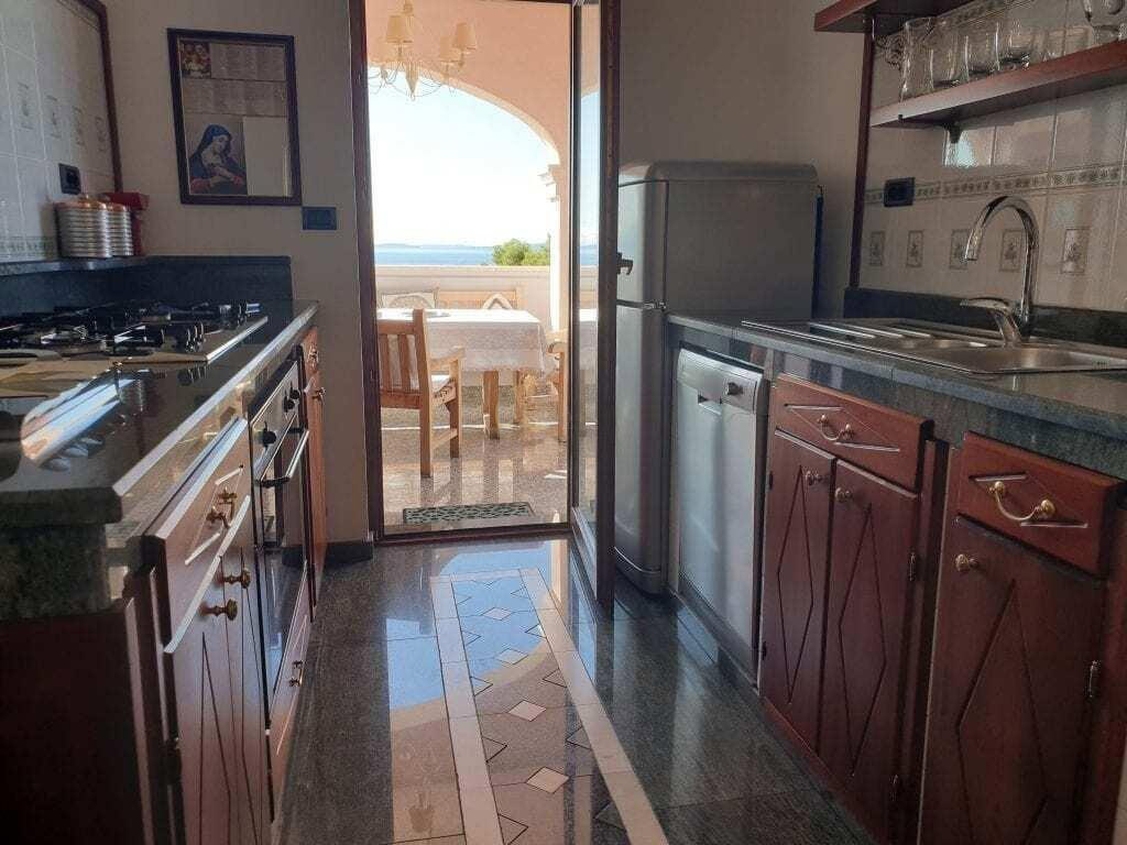 Prostrana lođa sa vanjskom kuhinjom i roštiljem idealna je za druženje s prijateljima i obitelji u privatnosti kuće s prekrasnim pogledom na kristalno Jadransko more