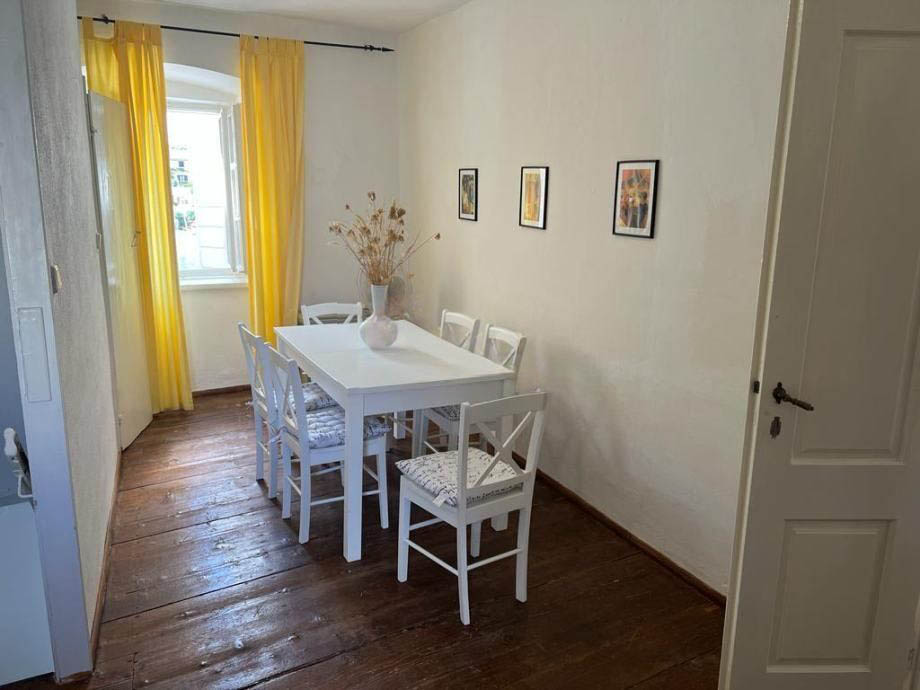 Na drugom katu se nalaze dvije velike spavaće sobe s pogledom na more, prostorija u kojoj se nalazi blagovaonski stol te stubište koje vodi u potkrovlje koje se može urediti u stambeno potkrovlje zbog stajaće visine. Nalazi se svega 10m od mora. Vlasništvo uredno.