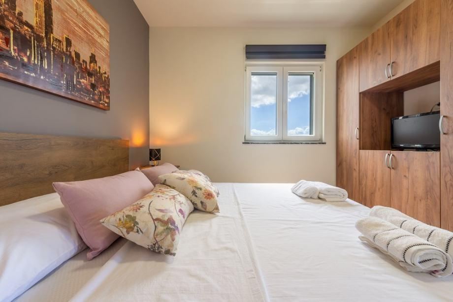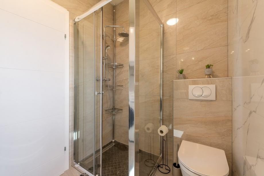 Unutarnje stepenice vode na kat na kojem se nalaze još dva jednosobna apartmana. Ukupna površina prvog kata je 95,92 m2.