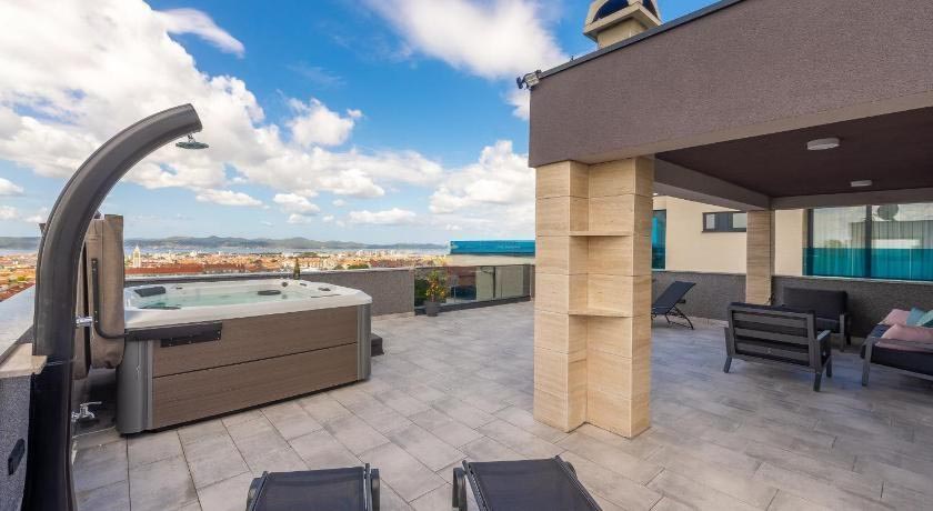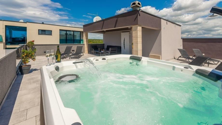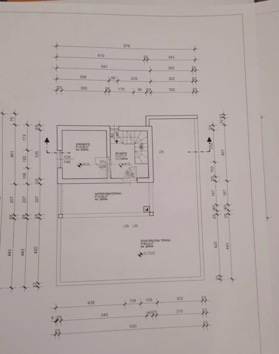 Ulazak na krovnu terasu na kojoj je dodatna prostorija koja se po želji ili potrebama može urediti kao spremište, teretana, sauna ili slično. Ukupna površina krovne terase je 93,42 m2. Predviđena za izradnju bazena.