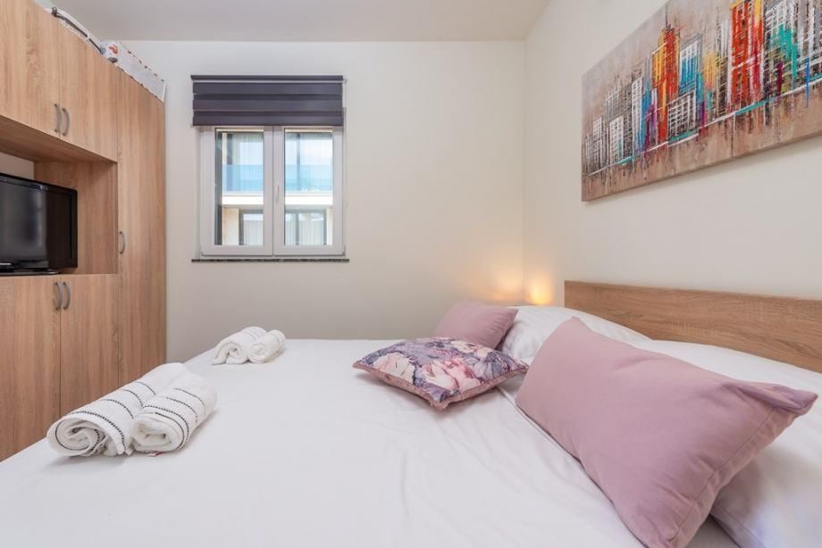 Dvosoban stan koji se sastoji od hodnika, dvije spavaće sobe, kupaonice, kuhinje s blagovaonicom i dnevnim boravkom. Iz garaže se može ući u stan na prizemlju.