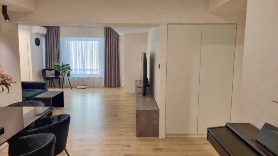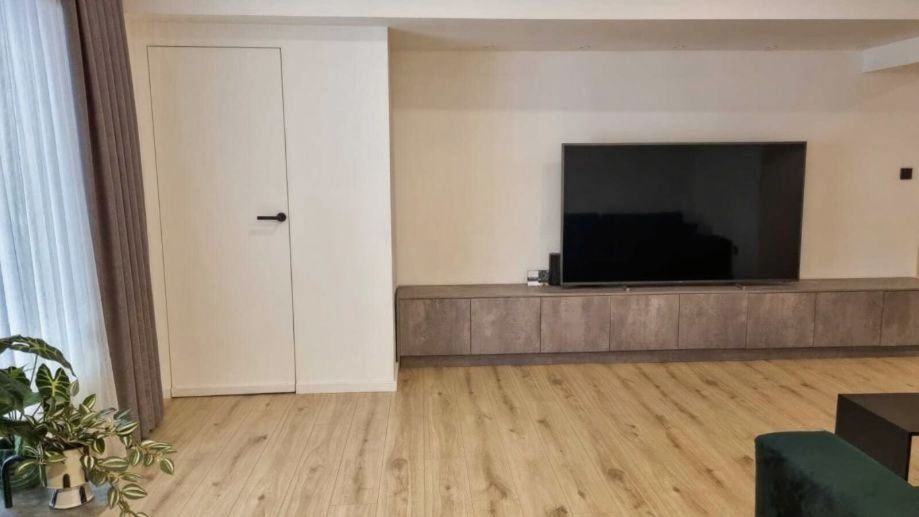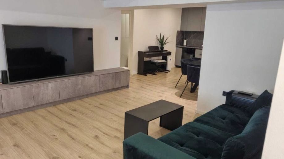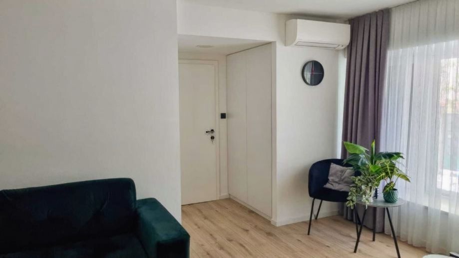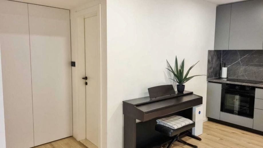 Nalazi se u visokom prizemlju stambene zgrade, a sastoji se od prostranog dnevnog boravka s kuhinjom i blagovaonicom, spavaće sobe s bračnim krevetom i kupaonice. U potpunosti je opremljen (perilica i sušilica za rublje, perilica za suđe, robotski usisivač, pročišćivač zraka, dva TV-a (75 i 50 inch).