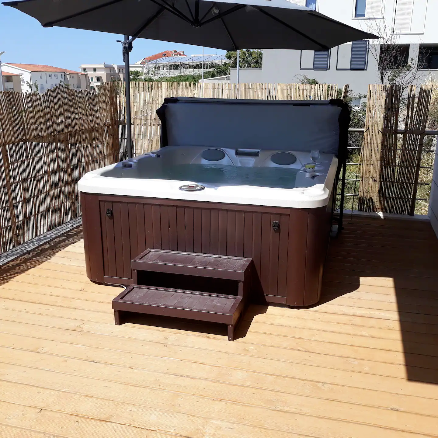 Posredujemo pri najmu trosobnog stana u Splitu, predio Žnjan. Stan se nalazi u stambenoj zgradi u novogradnji. Sastoji se od tri spavaće sobe, kuhinje s blagovaonicom i dnevnim boravkom, kupaonice, zasebnog wc-a te prostrane terase površine 40m2. Na terasi se nalazi jacuzzi za 5 osoba, prostor za sjedenje i uživanje, ljuljačka.. Stan je dostupan od 07.10. do 01.04.2024.