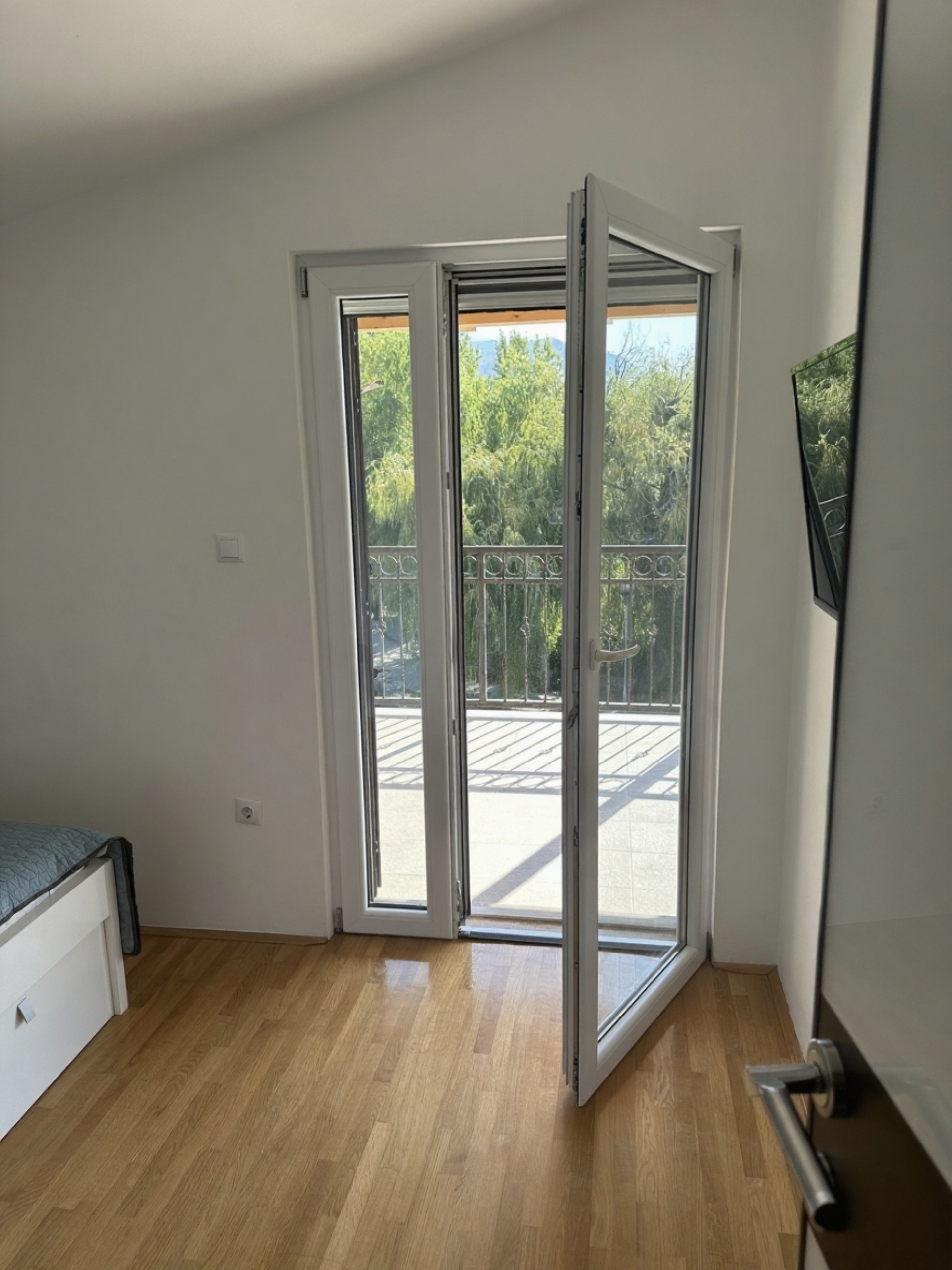 Iz stana se pruža prekrasan pogled na rijeku i zelenilo. U dvorištu se nalazi zajednički roštilj i prostor za igru ​​i odmor.