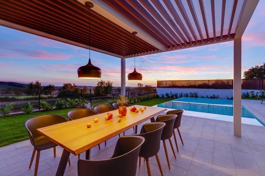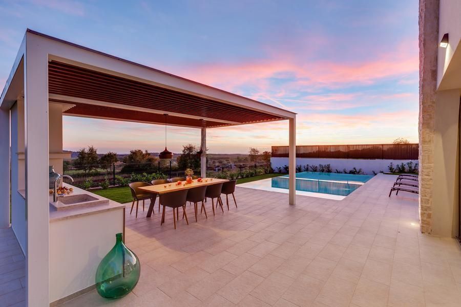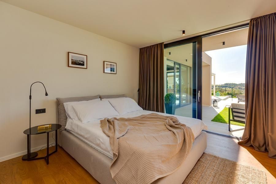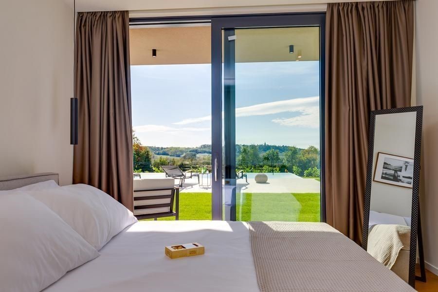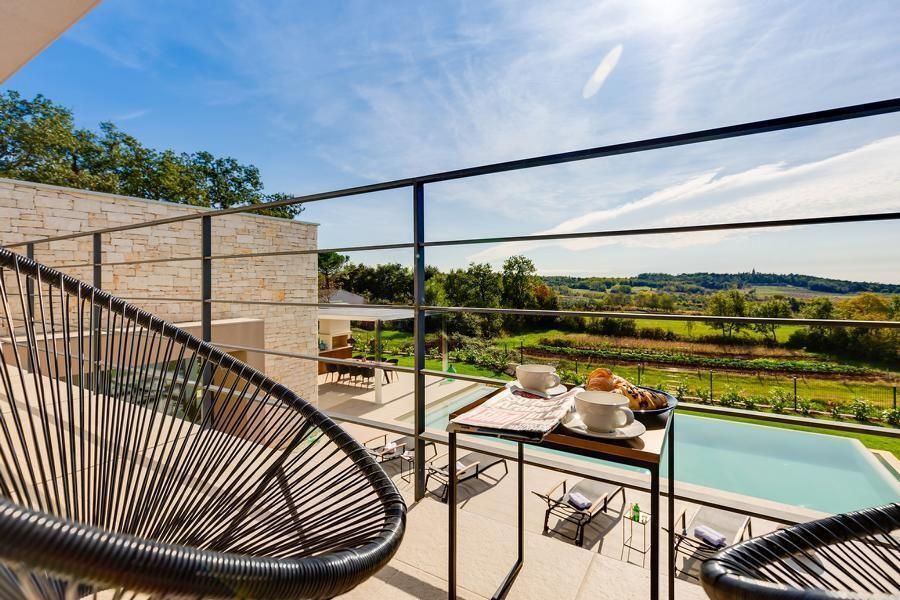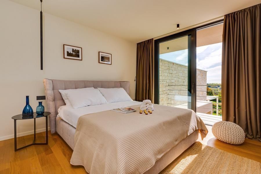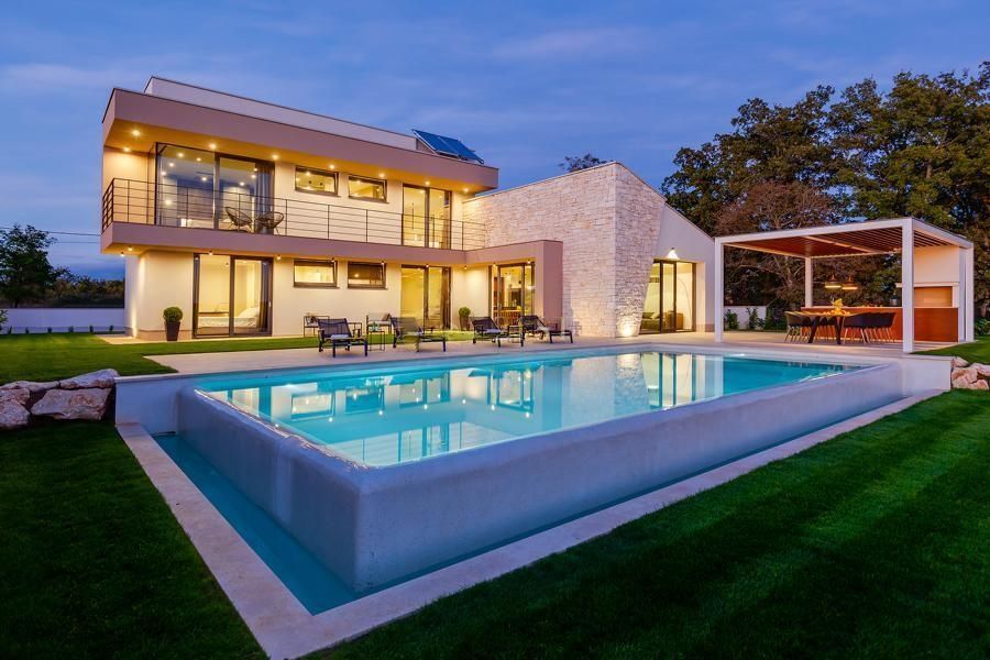Ova ekskluzivna novoizgrađena vila nalazi se u malom istarskom mjestu udaljenom 12 km od mora i Poreča. Visoki sjaj i glamur, elegancija i sofisticiranost, luksuz i umjerenost glavna su obilježja interijera ove vile. Svaka soba obogaćena je prekrasnim namještajem i ukrasnim elementima, dizajnirana u galantnom i dojmljivom stilu