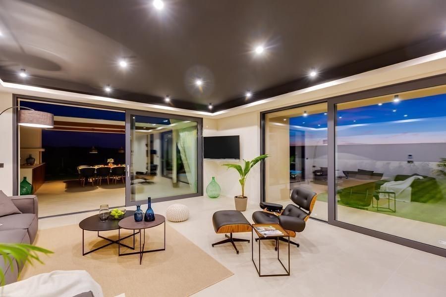 Rasvjeta vile moderno je oblikovana ugradnjom LED stropnih svjetala u kombinaciji s neizravnom rasvjetom kako bi se postigao što bolji vizualni i estetski učinak.