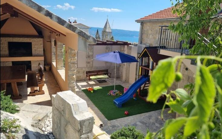 Posredujemo pri prodaji kamene kuće u Gornjoj Podstrani s koje se pruža jedan od najljepših pogleda u Dalmaciji. Kuća ima četiri etaže. U prizemlju se nalazi dalmatinska konoba kapaciteta 25 sjedećih mjesta. Na prvom katu se nalazi dnevni boravak, blagovaonica te velika terasa površine 50m2 na kojoj se nalazi jacuzzi. Na drugom katu nalaze se tri sobe s kupaonicom te Wc-om.