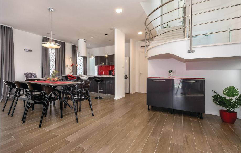 Posredujemo pri prodaji prekrasne vile površine 245 m2 u Ražnju. Sastoji se od prizemlja, prvog te drugog kata. U prizemlju se nalazi prostrani dnevni boravak, kuhinja s blagovaonicom te kupaonica. Iz dnevnog boravka se izlazi na natkrivenu terasu gdje se nalazi vlastiti kamin-roštilj. Na prvom katu nalaze se tri spavaće sobe s vlastitom kupaonicom. Svaka spavaća soba ima izlaz na terasu te otvoren pogled na more. Na drugom katu se nalazi teretana, jacuzzi te kupaonica. Okućnicom dominira veliki bazen (54m2) u sklopu kojeg se nalazi i whirlpool. Nalazi se u neposrednoj blizini mora i svih potrebnih sadržaja. Vlasništvo uredno.