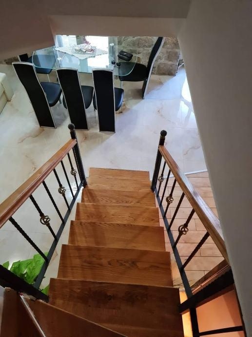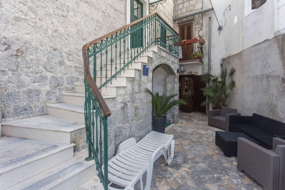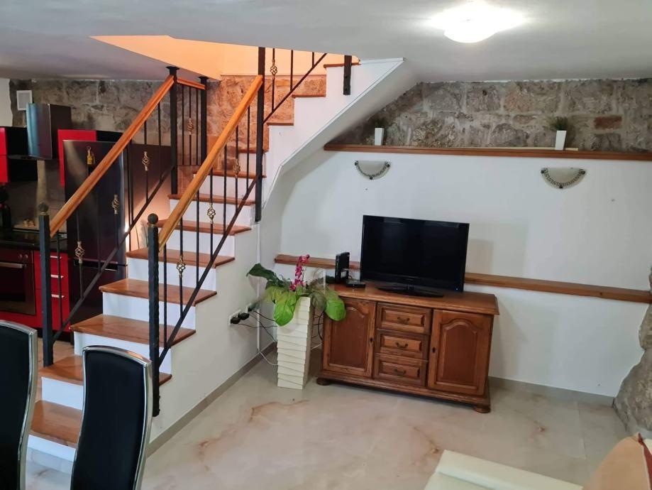 It is located in a charming stone house under Marjan. The apartment is on two floors, and consists of a kitchen with a dining room and a living room on the first floor, and two bedrooms and a bathroom on the second floor. It is fully equipped. Pets are allowed on request. The price of the monthly rent is 1000e + utilities.