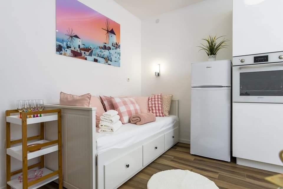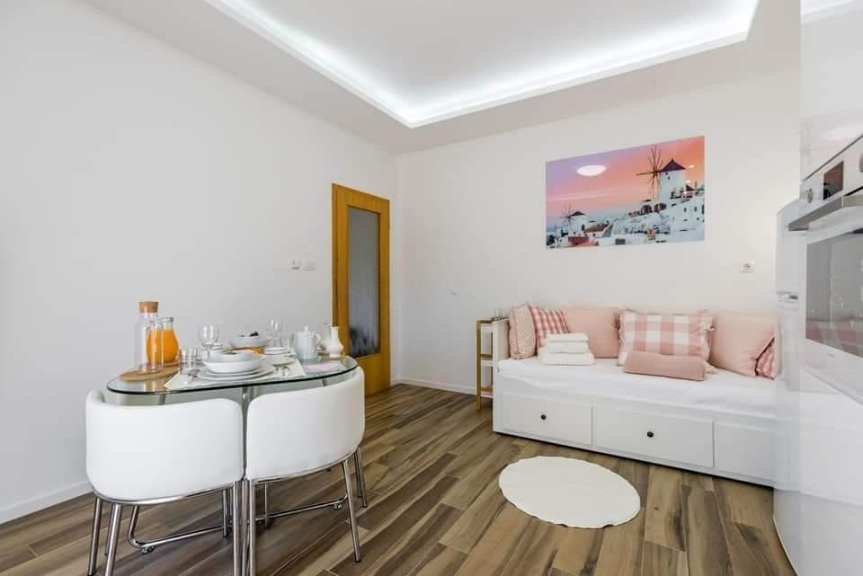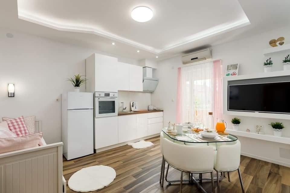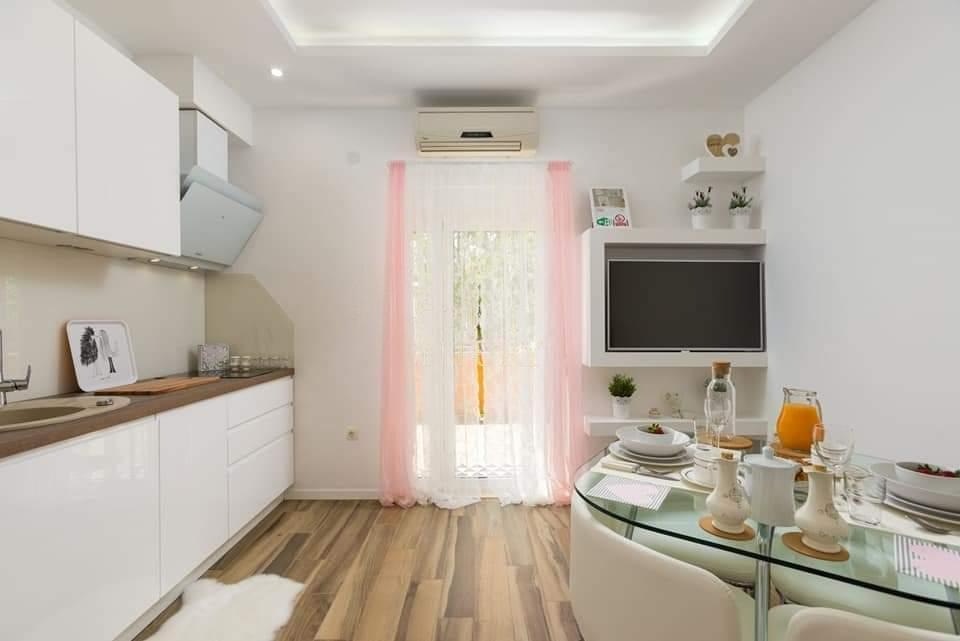 We mediate the sale of a house in Split, Kila district. The house consists of two floors, and consists of five apartments that are on the same level. The first apartment of 32.69 m2 is located on the ground floor and consists of a hallway, living room with kitchen, bedroom, bathroom, storage room and terrace.
