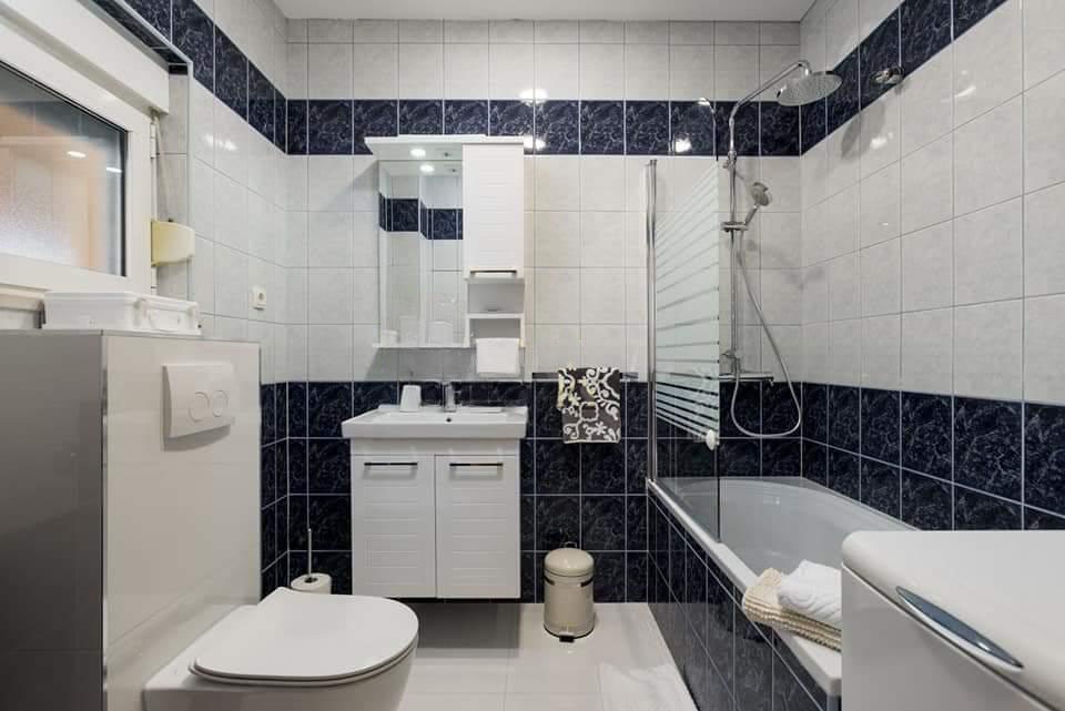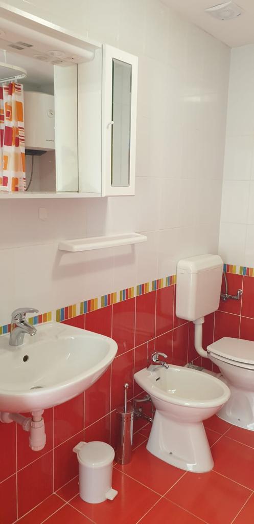 The second apartment with an area of ​​198.58 m2 is two-storey and extends through the ground floor and the first floor. It consists of a living room, a kitchen, a bedroom, two bathrooms, an entrance hall and a storage room on the ground floor, while on the first floor there is a hallway, four bedrooms, a bathroom, a terrace and a balcony.