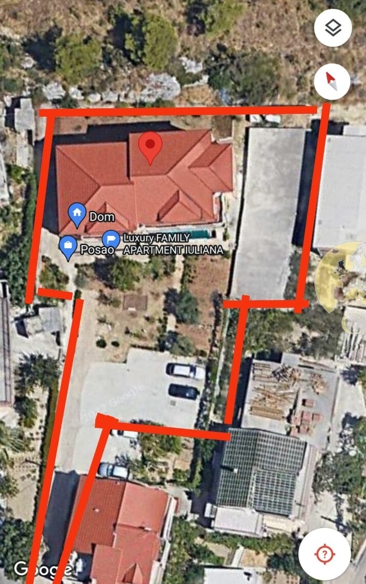 On the plot there is a residential building with an area of ​​145 m2, which can be upgraded with 2-3 residential units of 50 m2 each. The road leads directly to the house and there is no continuation. Each apartment has a parking space in the yard.