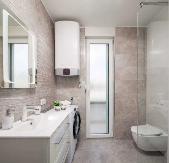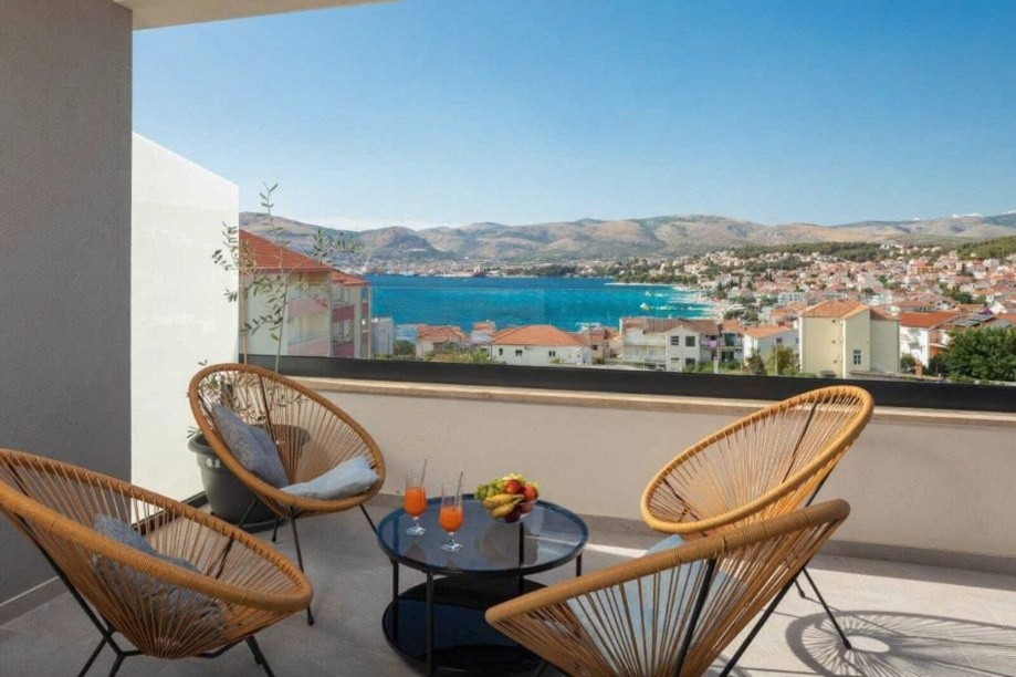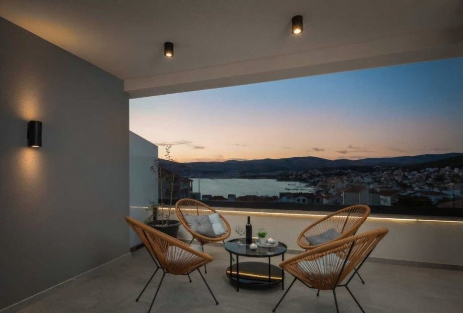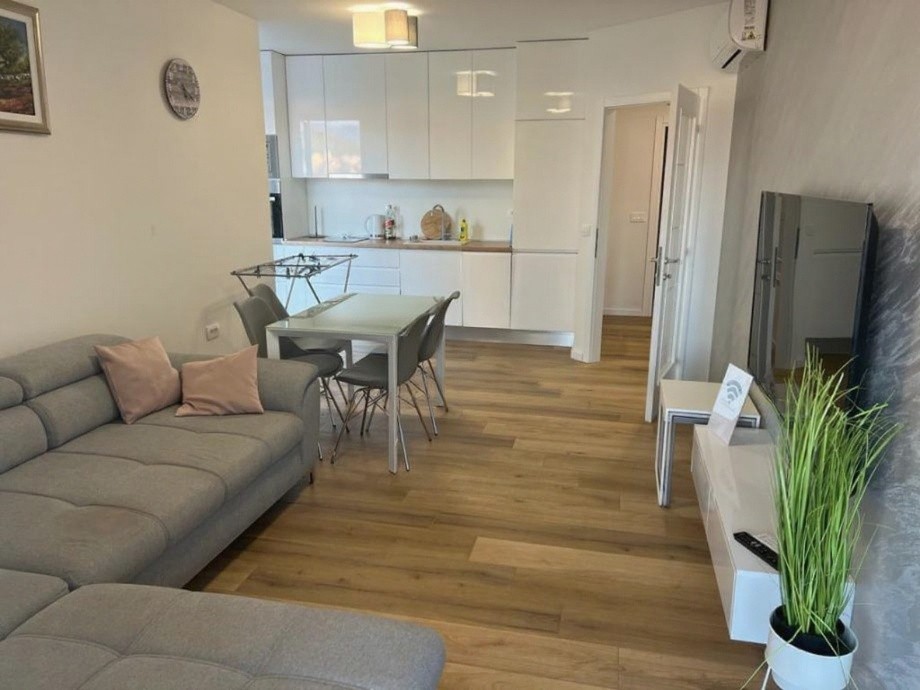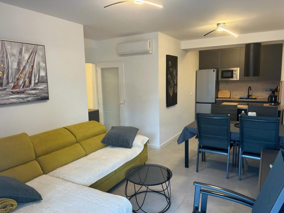 We mediate the rental of luxury apartments in Čiovo – Okrug Gornji, which is located 5 km from Split airport. The apartments are located in a newly built urban villa. They are fully furnished and equipped. One-room apartments of 40 m2 are located on the ground floor and consist of one bedroom, living room, kitchen with dining room, bathroom with underfloor heating and access to the terrace.
