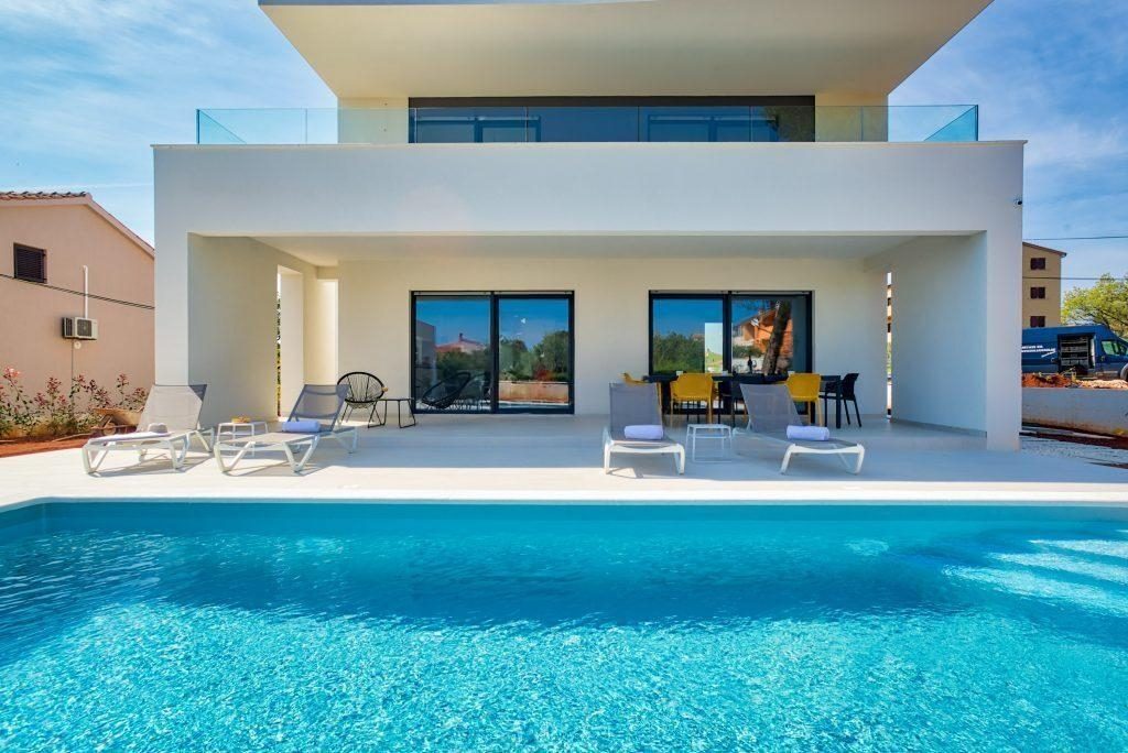 Newly built luxury villa of modern architecture located in the place 1500m from the town of Medulin and 700m from the nearby pebble beaches