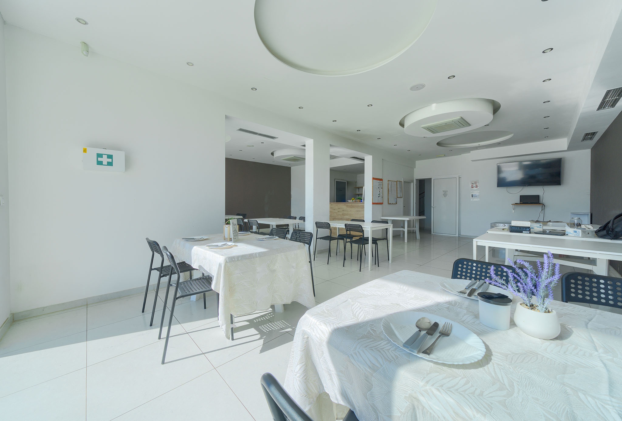 The ground floor of 276.87m2 consists of 2 separate apartments with a bedroom and a bathroom and a large space for a coffee bar/dining room.