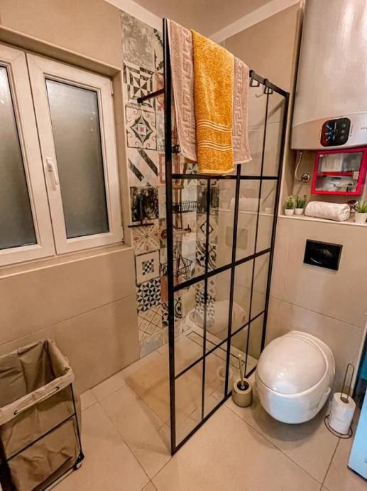 The property was completely renovated 2 years ago (new water and electricity installations, floor and wall ceramics, sanitary ware, stone cladding, etc.) and is completely newly equipped with furniture, lighting and appliances, including a Candy Trio dishwasher, oven, hob, microwave, Klarstein fridge with freezer, Philips Ambilight 65″ Smart TV, Ariston WIFI boiler, air conditioning, sofa bed with 150x200cm mattress, 140x200cm bed, balcony awning, blinds and mosquito nets.